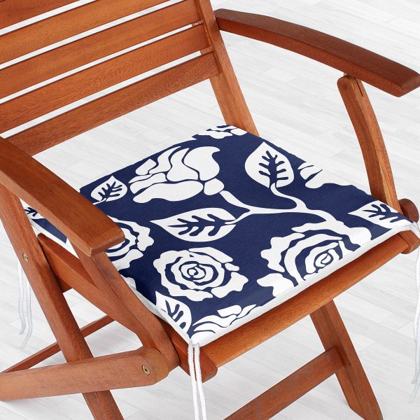 Lacivert Zeminli Beyaz Tropik Yaprak Motifli Fermuarlı Sandalye Minderi
