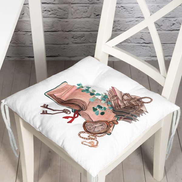 Özel Tasarım Kitap Temalı Dijital Baskılı Modern Pofuduk Sandalye Minderi