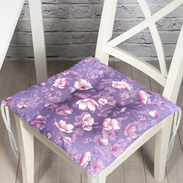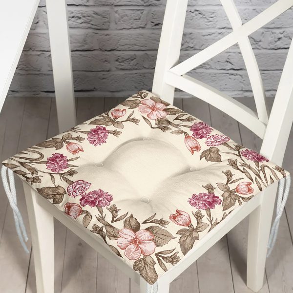 Özel Tasarım Çiçek Resimli Dijital Baskılı Modern Pofuduk Sandalye Minderi