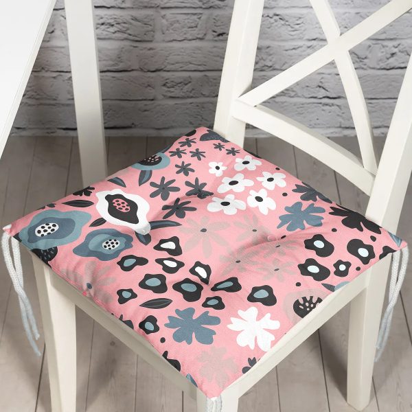 Papatya & Gül Tasarımlı Dijital Baskılı Modern Pofuduk Sandalye Minderi