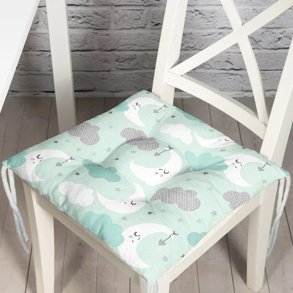 Realhomes Renkli Ay Bulut Motifli Özel Tasarım Dijital Baskılı Modern Pofuduk Sandalye Minderi