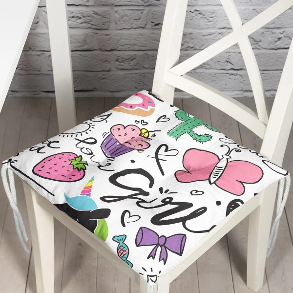 Bebek Desenli Çilek Kelebek Dijital Baskılı Özel Tasarım Modern Pofuduk Sandalye Minderi