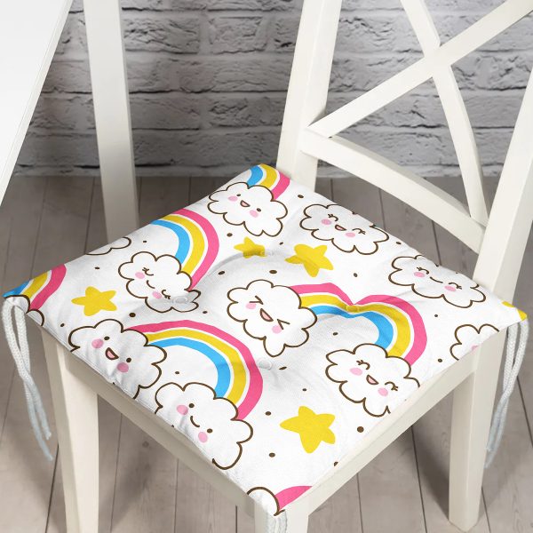 Mavi Bulut Ve Gökkuşağı Dijital Baskılı Özel Tasarım Modern Pofuduk Sandalye Minderi