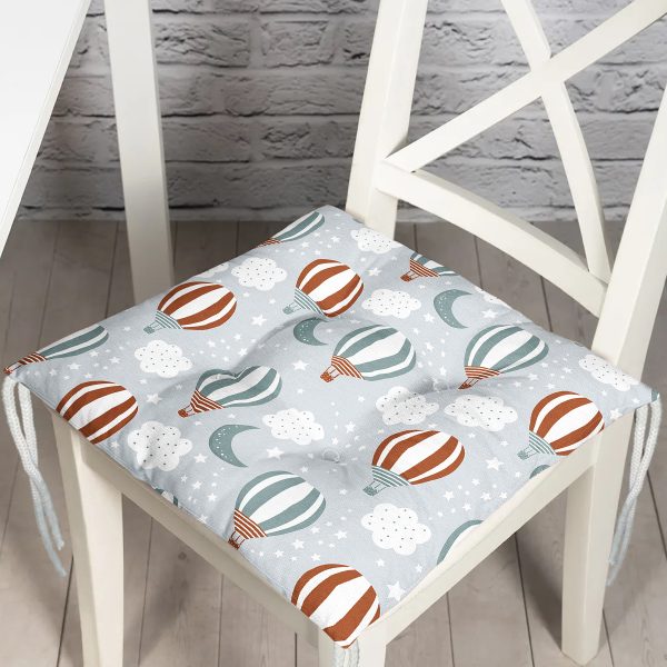 Uçan Balon Bulut Ve Ay Desenli Dijital Baskılı Özel Tasarım Modern Pofuduk Sandalye Minderi