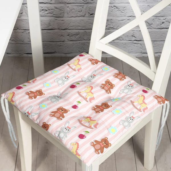 Sevimli Ayıcık Ve Tavşan Motifli Dijital Baskılı Özel Tasarım Modern Pofuduk Sandalye Minderi