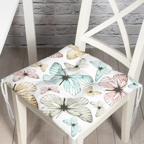 Renkli Kelebek Temalı Dijital Baskılı Modern Pofuduk Sandalye Minderi