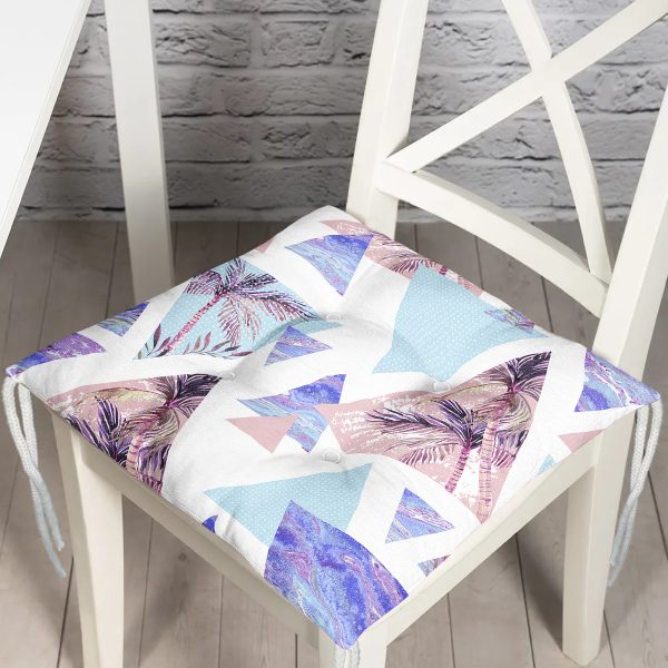 Mavi Geometrik Şekilli Palmiye Motifli Dijital Baskılı Pofuduk Sandalye Minderi