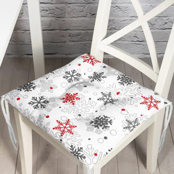 Yılbaşı Kar Desenli Özel Tasarımlı Dijital Baskılı Modern Pofuduk Sandalye Minderi
