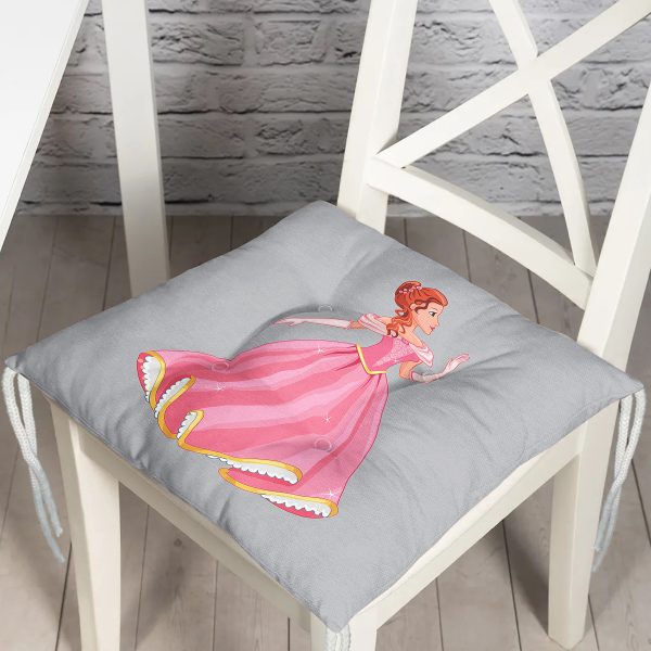 Realhomes Gri Zeminde Pamuk Prenses Çizgi Film Desenli 3D Modern Pofuduk Sandalye Minderi