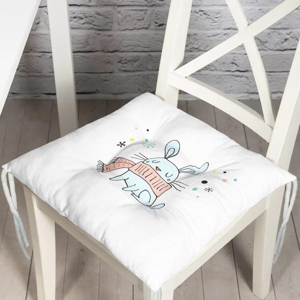 Realhomes Beyaz Zeminde Atkılı Tavşan Motifli Modern Pofuduk Sandalye Minderi