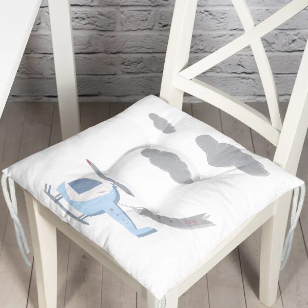 Realhomes Beyaz Zeminde Helikopter Tasarımlı Modern Pofuduk Sandalye Minderi