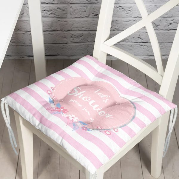 Pembe Beyaz Çizgili Özel Tasarımlı Bebek Odası Pofuduk Sandalye Minderi