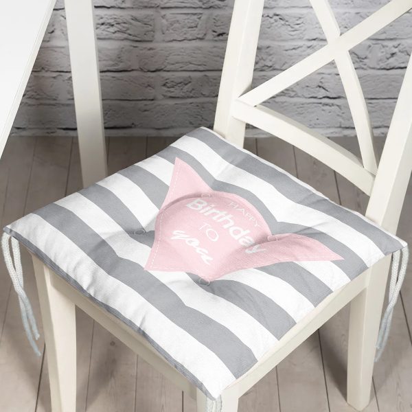 Gri Çizgili Doğum Günü Temalı Özel Tasarımlı Dijital Baskılı Çocuk Odası Pofuduk Sandalye Minderi