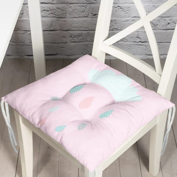 Pembe Zemin Bulut Ve Yağmur Motifli Özel Tasarımlı Dijital Baskılı Modern Pofuduk Sandalye Minderi