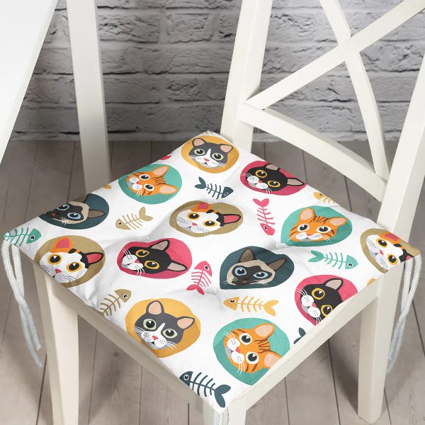 Sevimli Hayvanlar ve Balık İskeletli Modern Pofuduk Sandalye Minderi