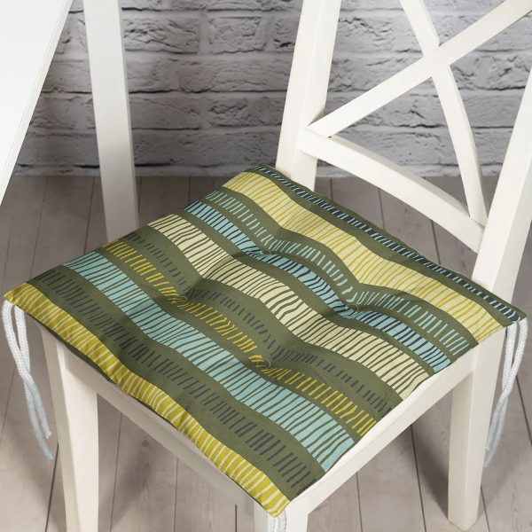 Yeşil Ve Krem Motifli Tasarım Dijital Baskılı Modern Pofuduk Sandalye Minderi