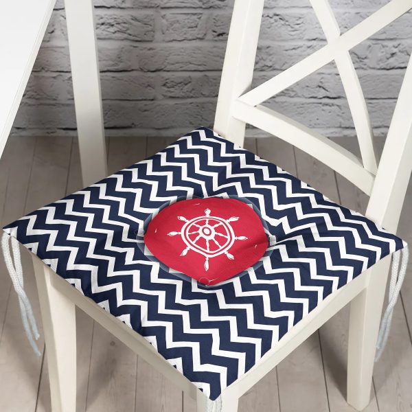 Renkli Zemin Üzerinde Geometrik Zikzak Desenli Çapa Dijital Baskılı Modern Pofuduk Sandalye Minderi