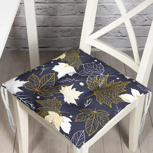 Renkli Zemin Üzerinde Gold Detaylı Yaprak Desenli Dijital Baskılı Modern Pofuduk Sandalye Minderi