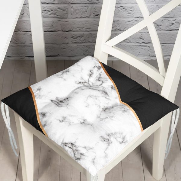 Renkli Geometrik Desenli Mermer Motifli Dijital Baskılı Modern Pofuduk Sandalye Minderi