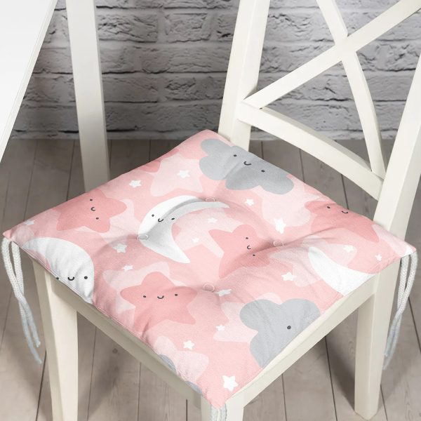 Realhomes Renkli Bulutlar Arasında Ay Yıldız Tasarımlı Dijital Baskılı Modern Pofuduk Sandalye Minderi