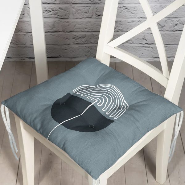 Soyut Tarzda Onedraw Çizimli Dijital Baskılı Modern Pofuduk Sandalye Minderi