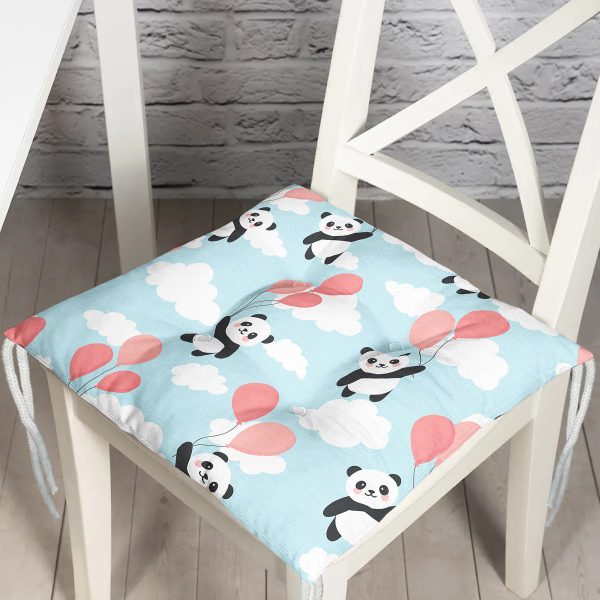 Realhomes Balonlu Panda Tasarımlı Dijital Baskılı Modern Pofuduk Sandalye Minderi