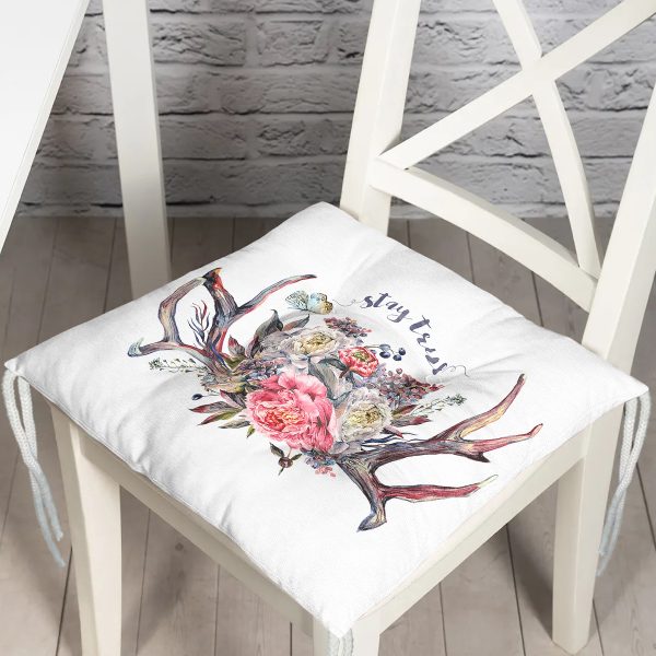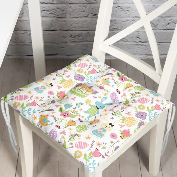 Realhomes Çiçekli ve Tavşan Tasarımlı Dijital Baskılı Modern Pofuduk Sandalye Minderi