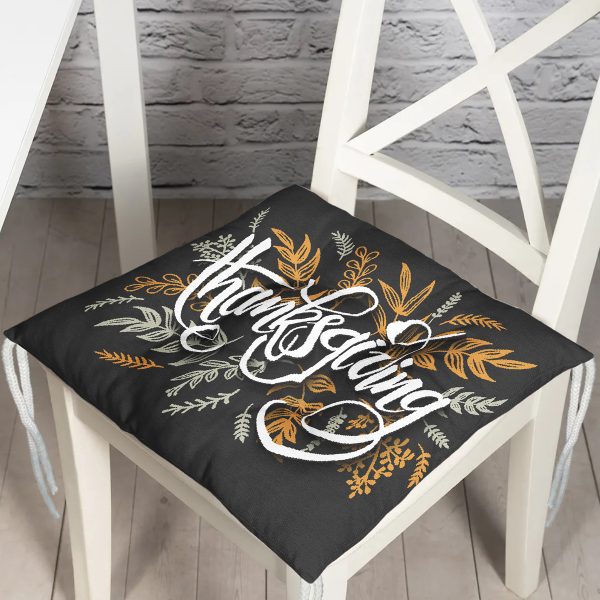 Stay True Motifli Kanaviçe Desenli Dijital Baskılı Pofuduk Sandalye Minderi