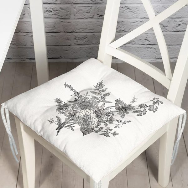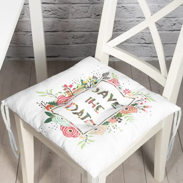 Save The Date Çiçek Desenli Dijital Baskılı Modern Pofuduk Sandalye Minderi