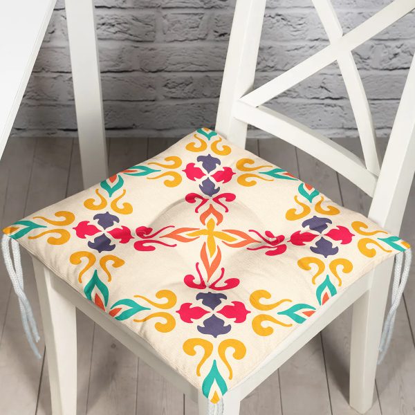 Rengarenk Zemin Üzerinde Çiçek Desenli Dijital Baskılı Modern Pofuduk Sandalye Minderi