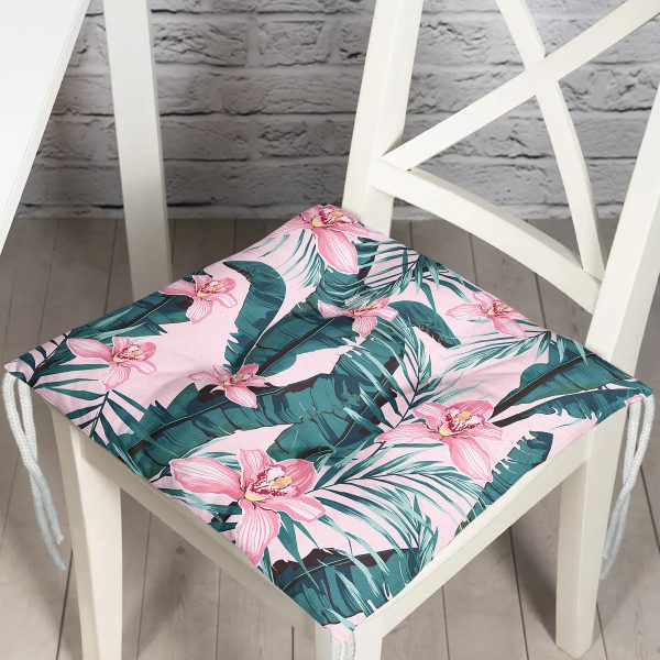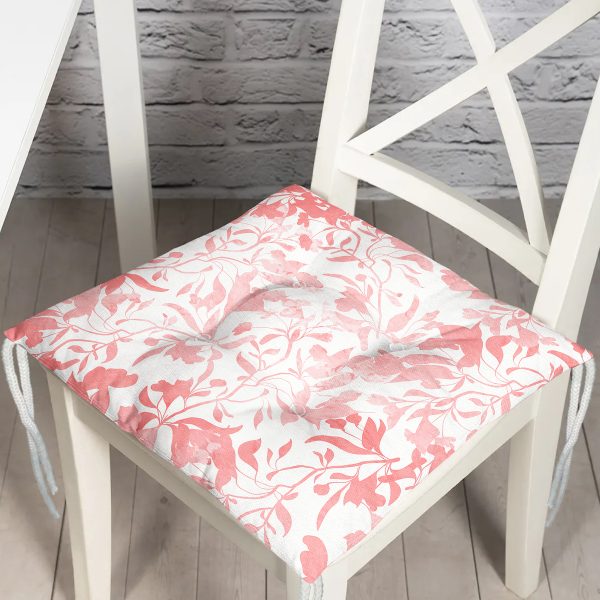 Pembe Yaprak Temalı Dijital Baskılı Pofuduk Sandalye Minderi