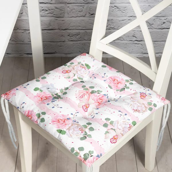 Pastel Zemin Üzerinde Çiçek Desenli Dijital Baskılı Modern Pofuduk Sandalye Minderi