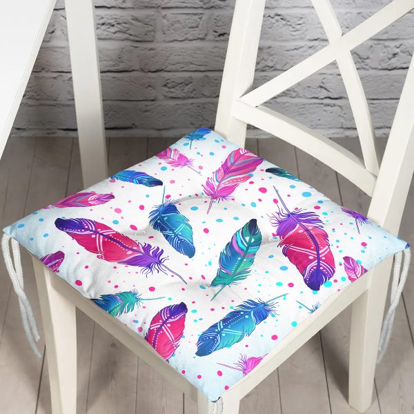 Realhomes Renkli Tüyler Özel Tasarımlı Dijital Baskılı Modern Pofuduk Sandalye Minderi