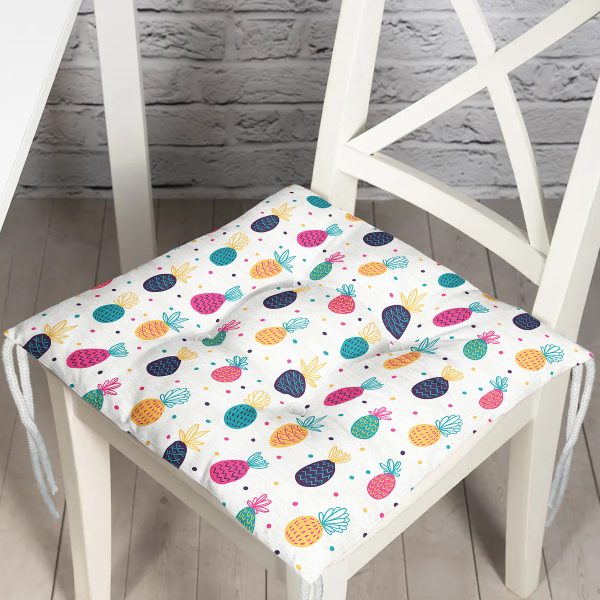 Realhomes Renkli Ananaslar Özel Tasarım Dijital Baskılı Modern Pofuduk Sandalye Minderi
