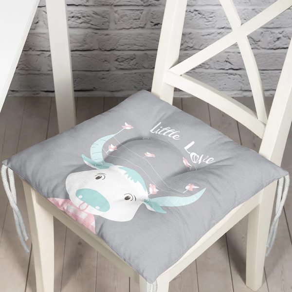 Gri Zemin Sevimli İnek Ve Kuş Özel Tasarımlı Dijital Baskılı Çocuk Odası Pofuduk Sandalye Minderi