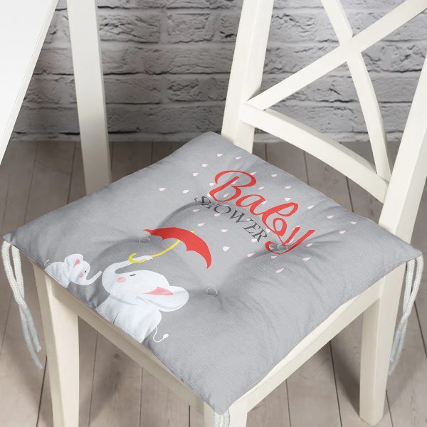 Gri Zemin Fil Desenli Baby Shower Özel Tasarımlı Dijital Baskılı Çocuk Odası Pofuduk Sandalye Minderi