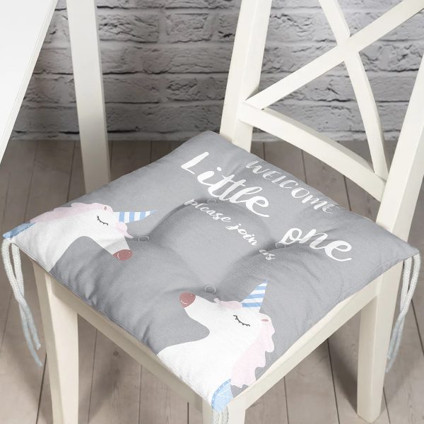 Gri Zemin Baby Shower Temalı Unicorn Desenli Dijital Baskılı Çocuk Odası Pofuduk Sandalye Minderi