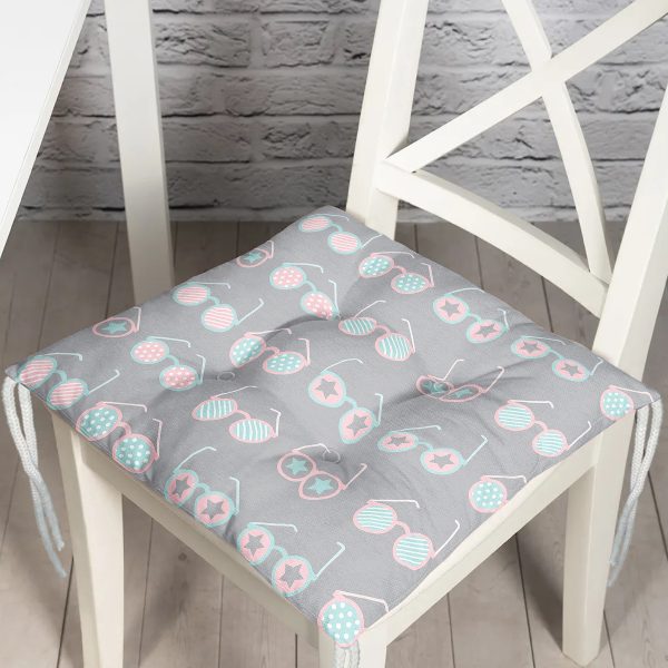 Gri Zeminde Sevimli Renkli Gözlük Motifli Dijital Baskılı Modern Pofuduk Sandalye Minderi