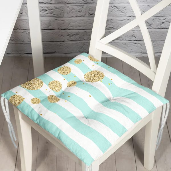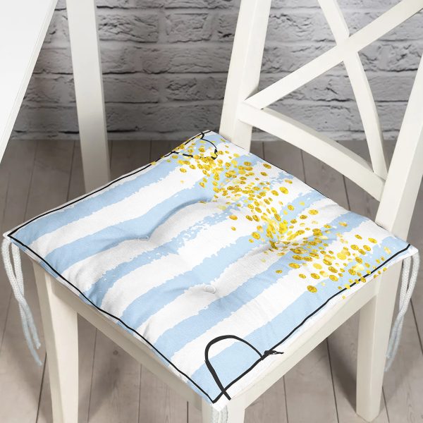 Realhomes Mavi Beyaz Çizgili Sarı Puanlı Temalı Modern Pofuduk Sandalye Minderi