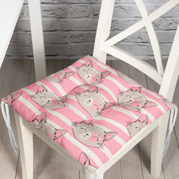 Pembe Çizgi Üzerinde Kedicikler Modern Pofuduk Sandalye Minderi