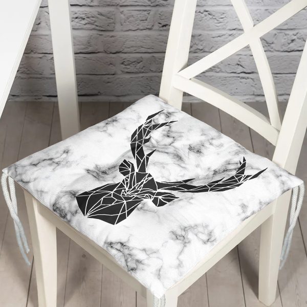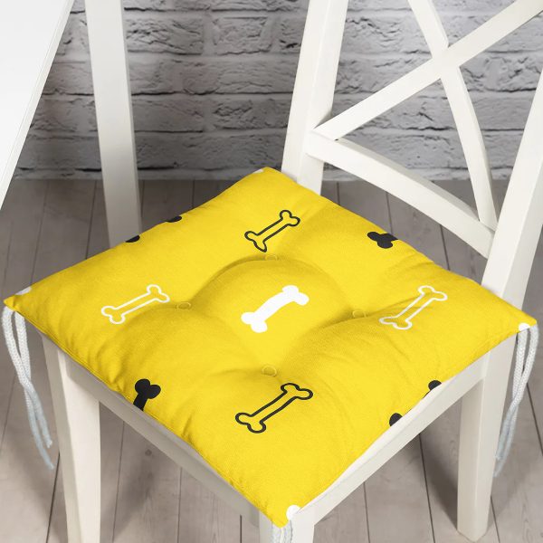 Büyük Kemik Desenli Dijital Baskılı Modern Pofuduk Sandalye Minderi