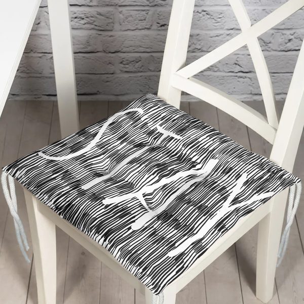 Siyah Beyaz Zeminli Onedraw Çizimli Stay Yazılı Dijital Baskılı Modern Pofuduk Sandalye Minderi
