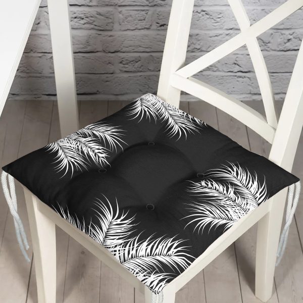 Siyah Zemin Üzerinde Beyaz Yaprak Desenli Dijital Baskılı Modern Pofuduk Sandalye Minderi