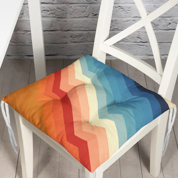 Zikzak Motifli Özel Tasarım Dijital Baskılı Modern Pofuduk Sandalye Minderi