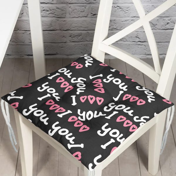 Sevgililer Günü Temalı Özel Tasarım Dijital Baskılı Modern Pofuduk Sandalye Minderi