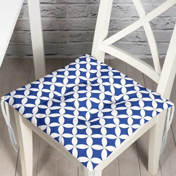 Lacivert Geometrik Çizimli Dijital Baskılı Modern Pofuduk Sandalye Minderi