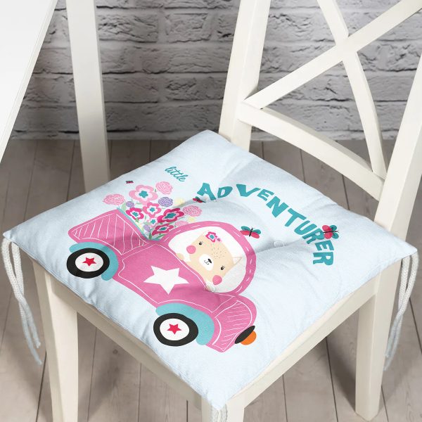 Pembe Ara Süren Kedi Figürlü Dijital Baskılı Modern Pofuduk Sandalye Minderi