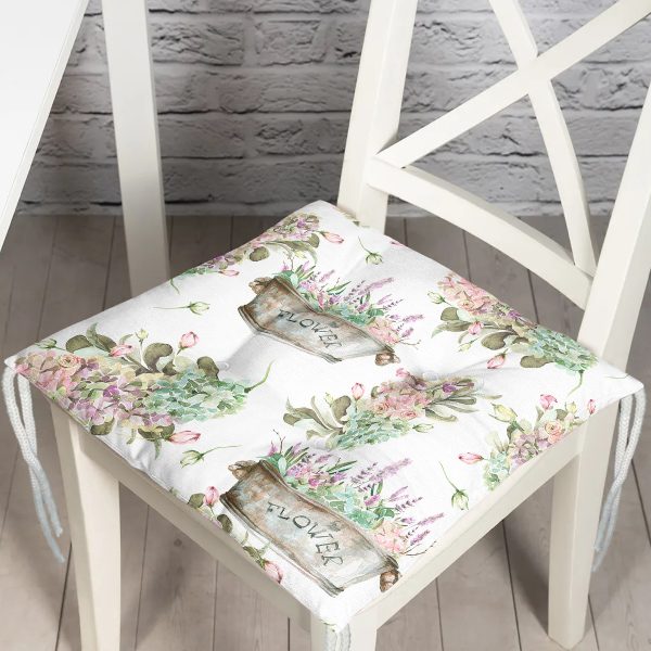 Flower & Çiçek Demetleri Özel Tasarım Dijital Baskılı Modern Pofuduk Sandalye Minderi