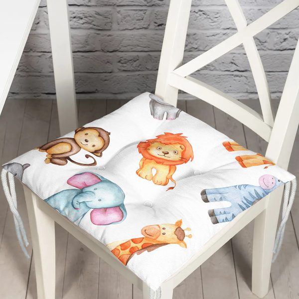 Şirin Mutlu Orman Hayvanları Dijital Baskılı Özel Tasarım Modern Pofuduk Sandalye Minderi