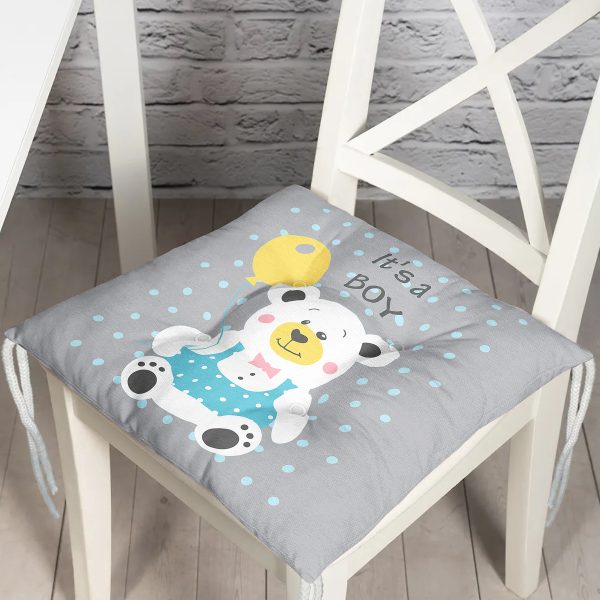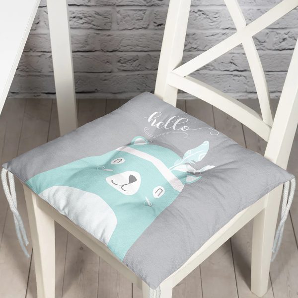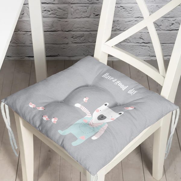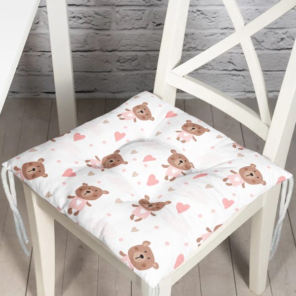 Sevimli Ayıcık Motifli Dijital Baskılı Özel Tasarım Modern Pofuduk Sandalye Minderi